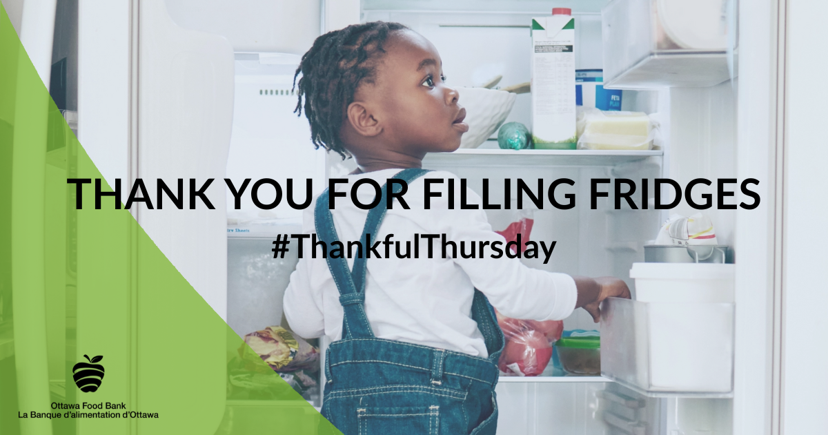 Thank you for meeting the challenge this GivingTuesday to fill fridges for families across Ottawa. Together, we filled 3,075 fridges! That means more families can share a meal together this
