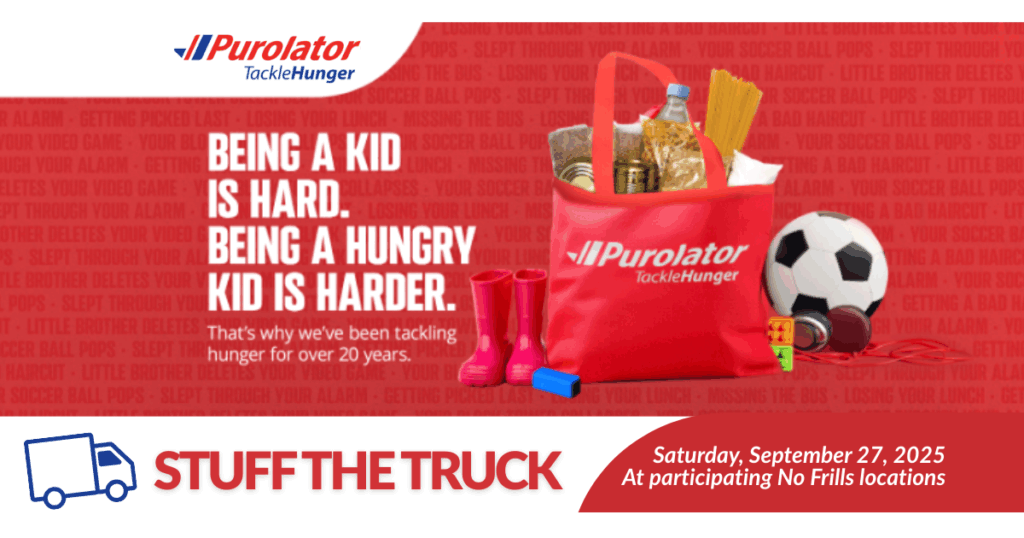 On Saturday, September 27, support the Purolator Tackle Hunger campaign by participating in Stuff the Truck at participating local No Frills locations across Ottawa. Pick-up an extra non-perishable item to support families across the city.