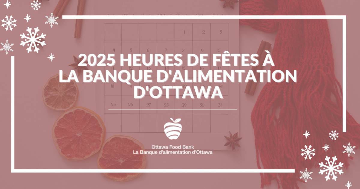 Merci pour vos contributions à la Banque d’alimentation d’Ottawa. Nous vous souhaitons des fêtes sécuritaires et joyeuses. Notre travail se poursuit en 2026 !